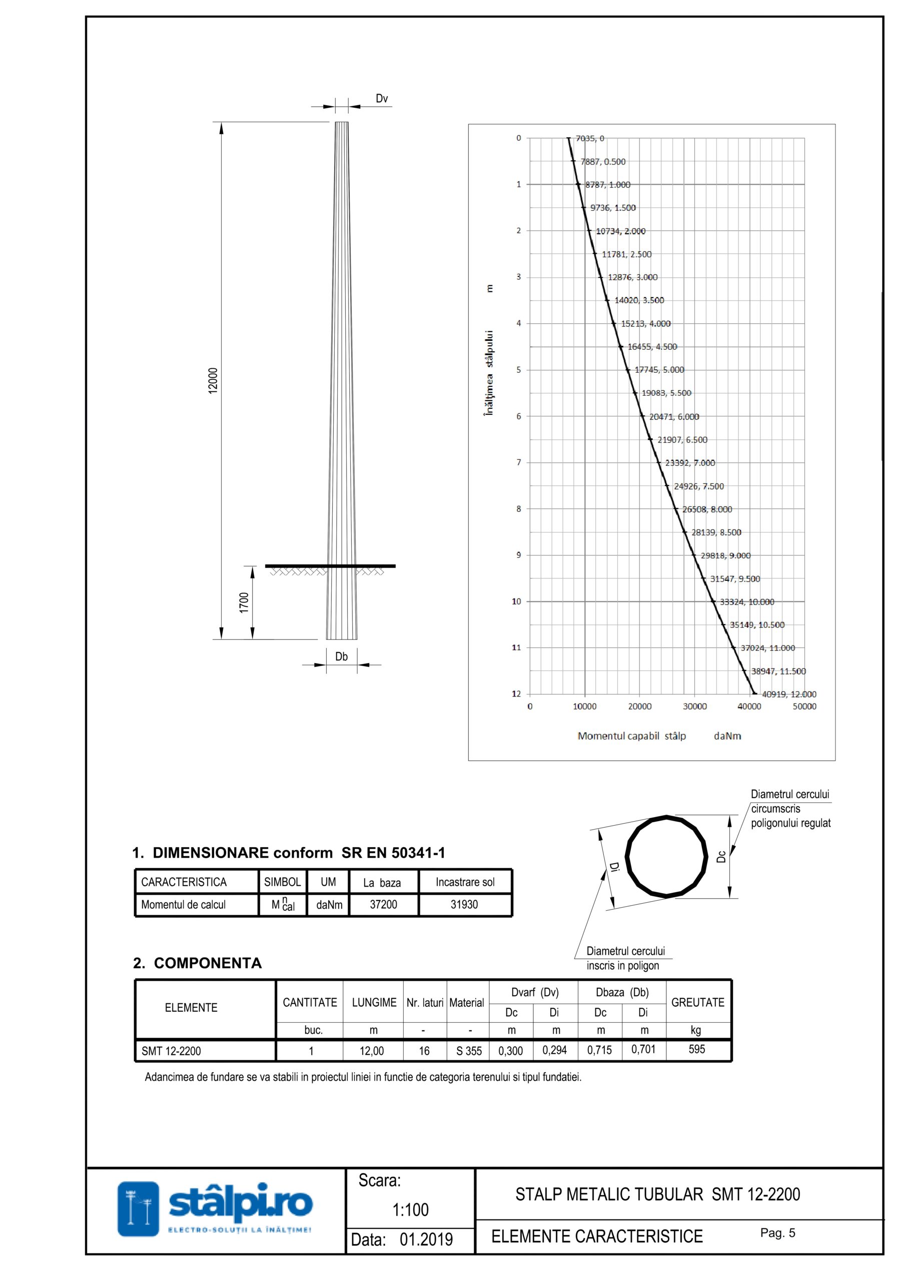 Forma poligonală tubulară conferă o greutate redusă raportată la capacitatea portantă, facilitând transportul, manipularea și montajul.