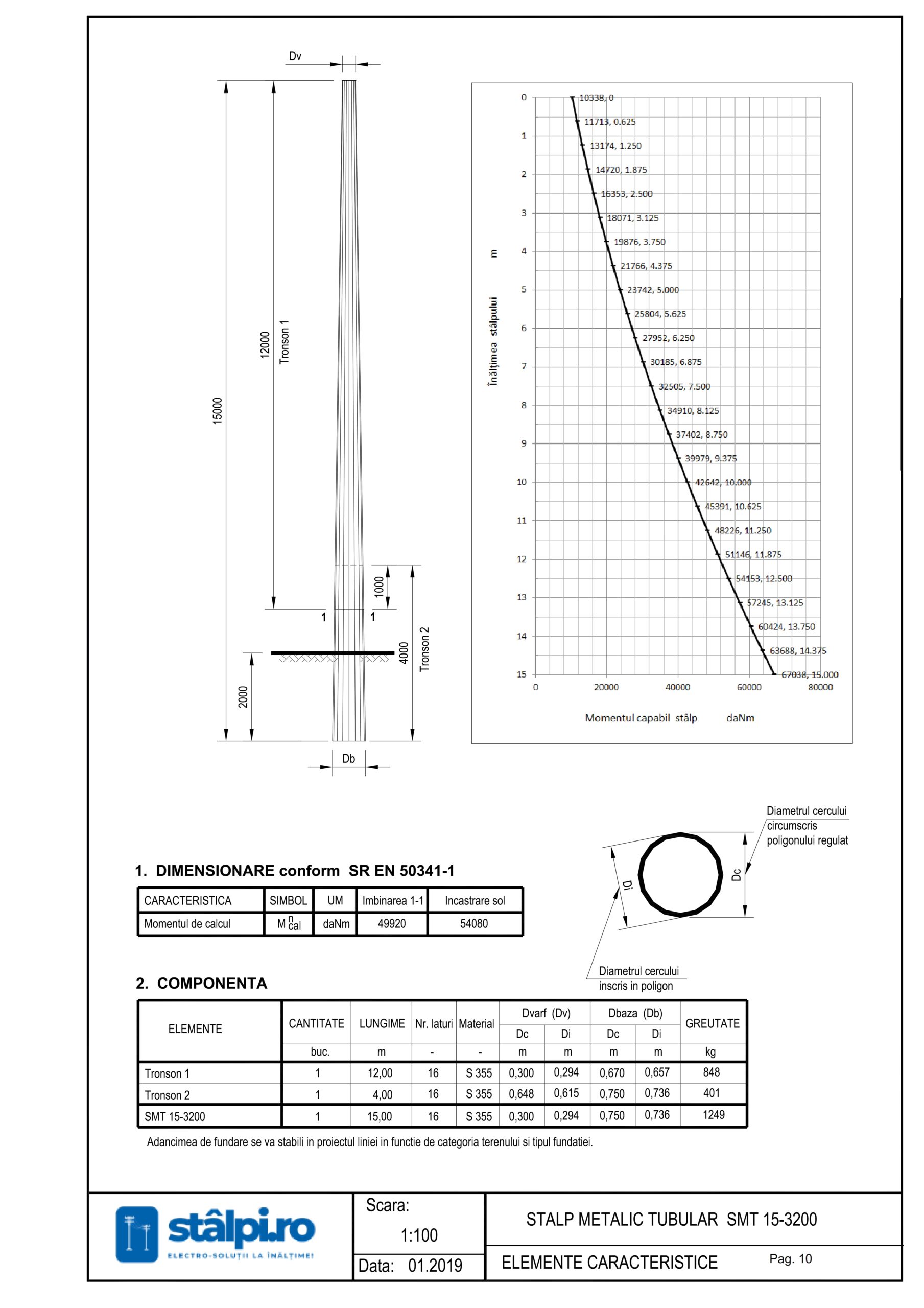 Forma poligonală tubulară conferă o greutate redusă raportată la capacitatea portantă, facilitând transportul, manipularea și montajul.